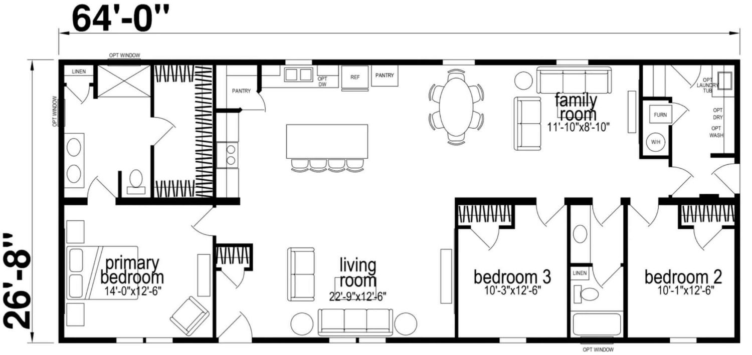 With dimensions measuring 64′ x 26′ 8″, the Galaxy 2303J provides ample space for families to thrive and grow.