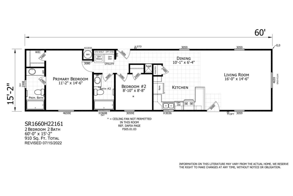 • 60′ x 15′-2″
