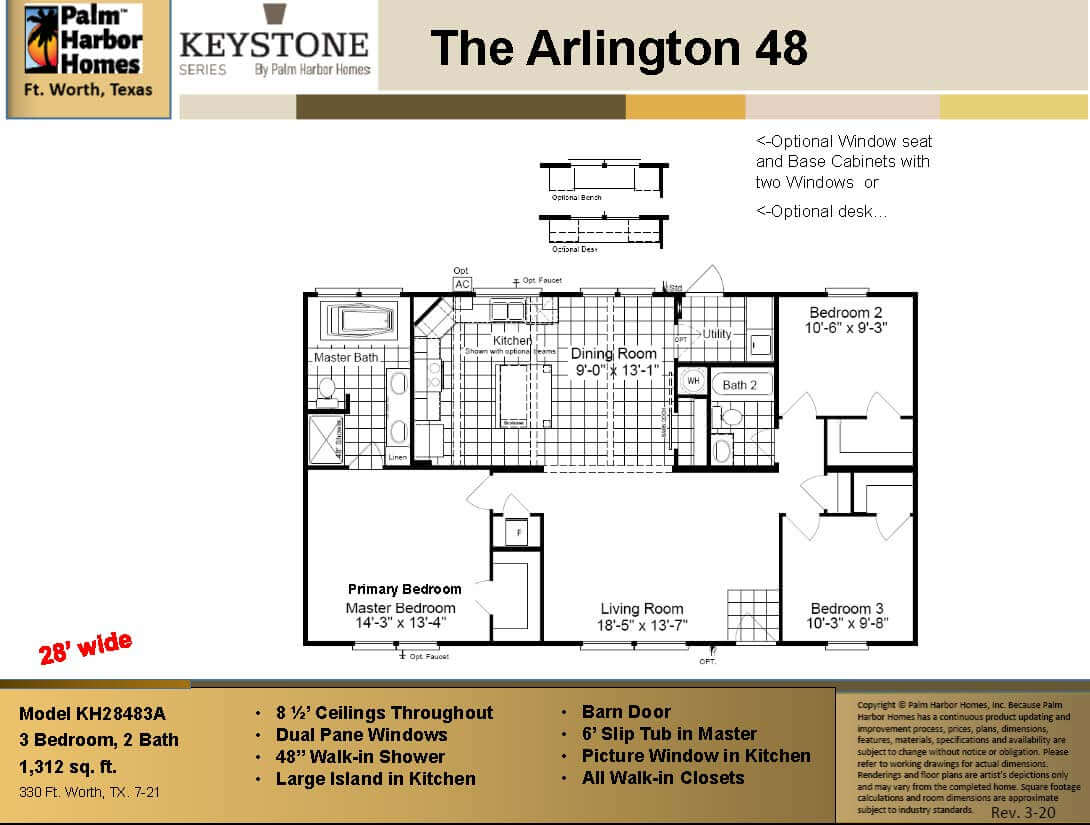 Is a 48′ x 28′ (1312 SQ FT) alternative to the slightly larger Arlington 48 KH30483A 48′ x 30′ (1440 SQ FT) from Palm Harbor Homes.